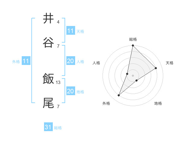 井谷 飯尾さんの総格は31画の5点!