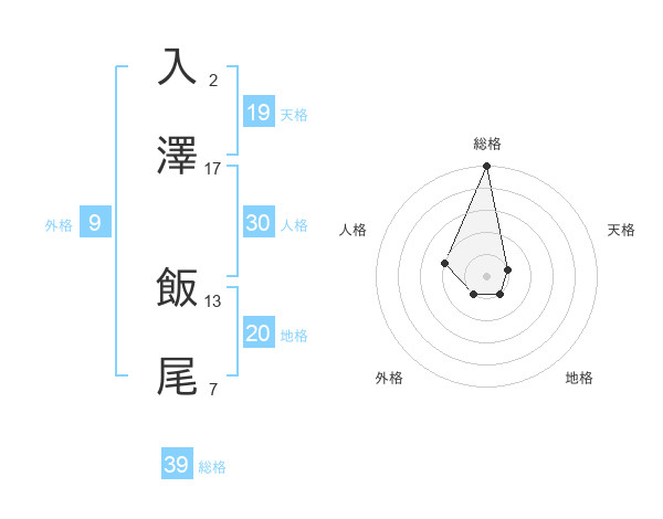 入澤 飯尾さんを姓名の画数から五運を鑑定