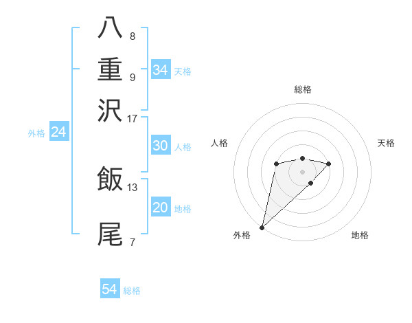 八重沢 飯尾さんを姓名の画数から五運を鑑定