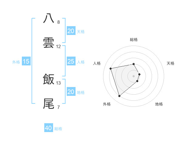 八雲 飯尾さんの地格は20画の1点!