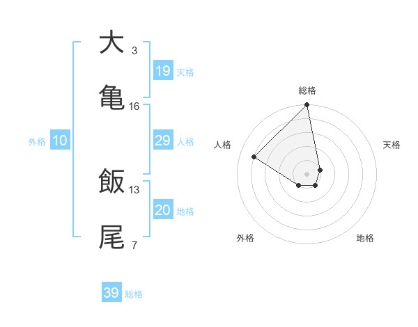 大亀 飯尾さんを姓名の画数から五運を鑑定