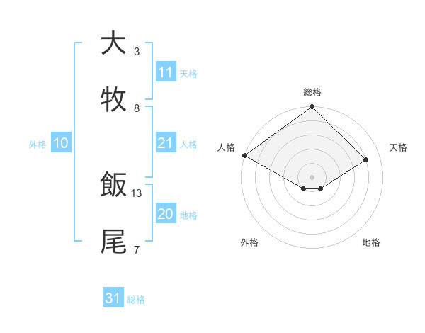 大牧 飯尾さんの総格は31画の5点!