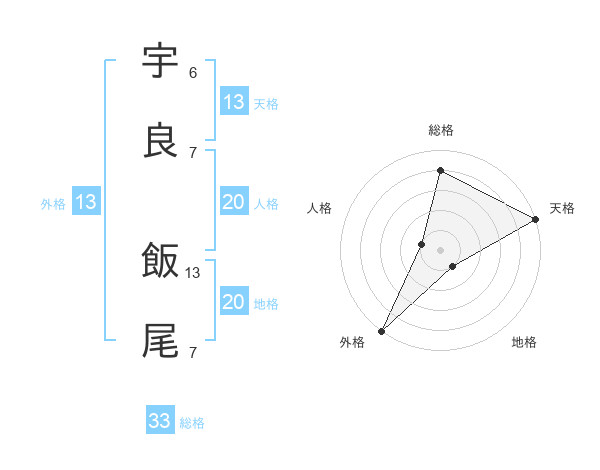 宇良 飯尾さんの外格は13画の5点!