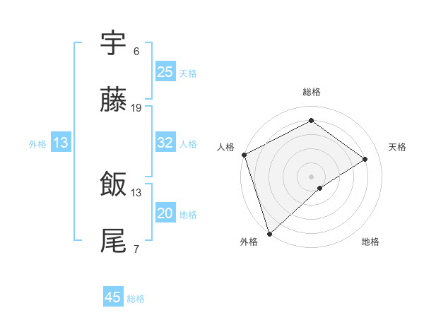 宇藤 飯尾さんの外格は13画の5点!