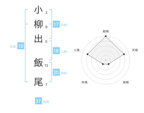 小柳出 飯尾さんの総格は37画の5点!