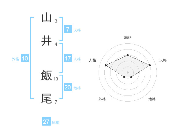 山井 飯尾さんの総格は27画の3点!