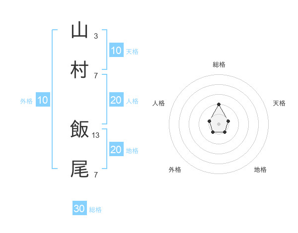 山村 飯尾さんを姓名の画数から五運を鑑定