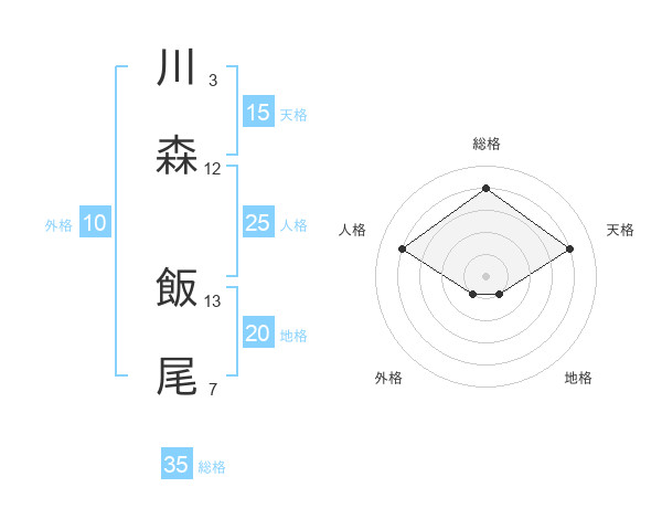 川森 飯尾さんの天格は15画の4点!