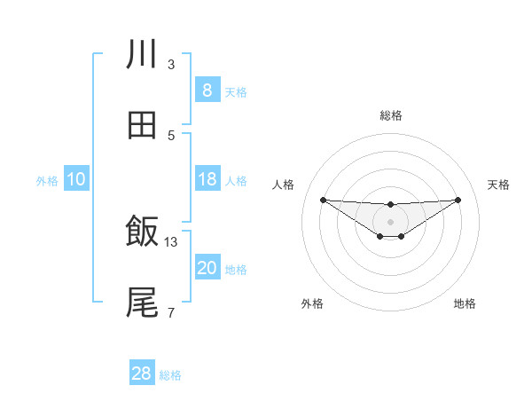 川田 飯尾さんを姓名の画数から五運を鑑定