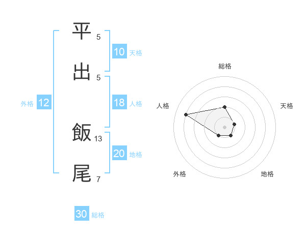 平出 飯尾さんの総格は30画の2点!