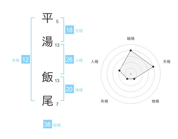 平湯 飯尾さんの総格は38画の4点!