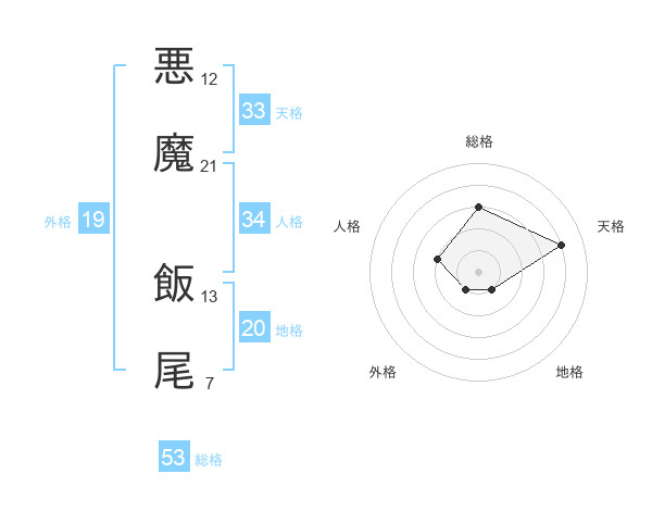 悪魔 飯尾さんを姓名の画数から五運を鑑定