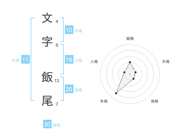 文字 飯尾さんの総格は30画の2点!