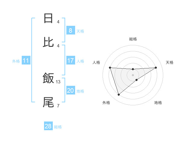 日比 飯尾さんの総格は28画の1点!