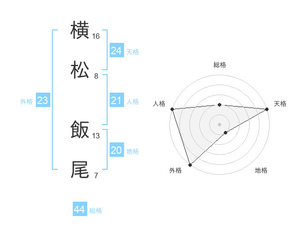 横松 飯尾さんの総格は44画の2点!