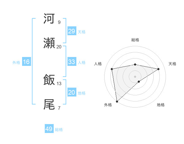 河瀬 飯尾さんの外格は16画の5点!