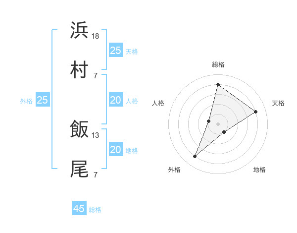 浜村 飯尾さんの総格は45画の4点!