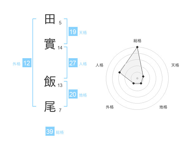田實 飯尾さんの総格は39画の5点!