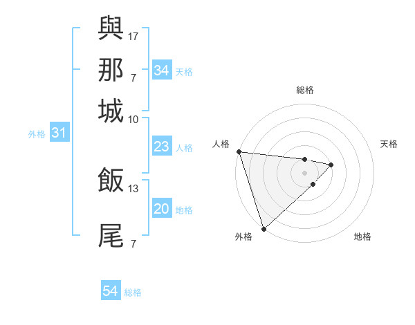 與那城 飯尾さんの地格は20画の1点!