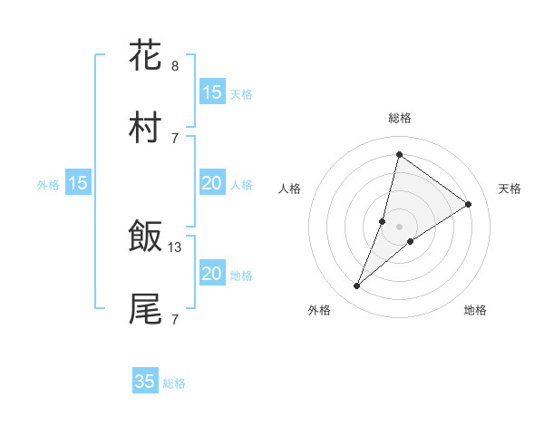 花村 飯尾さんの総格は35画の4点!