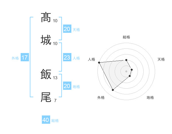髙城 飯尾さんを姓名の画数から五運を鑑定