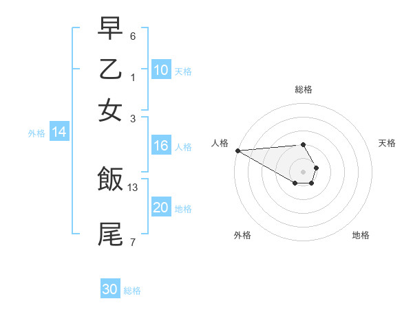 早乙女 飯尾さんを姓名の画数から五運を鑑定