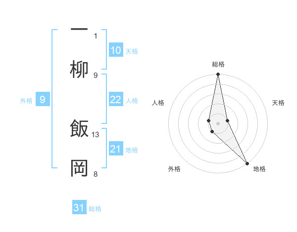 一柳 飯岡さんの総格は31画の5点!