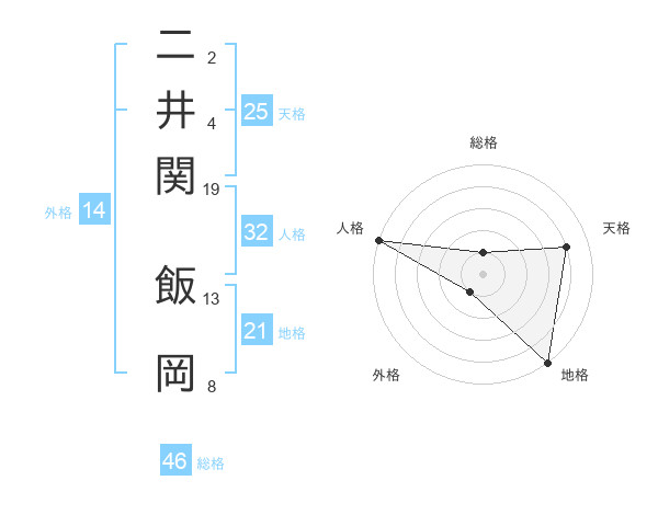 二井関 飯岡さんの総格は46画の1点!