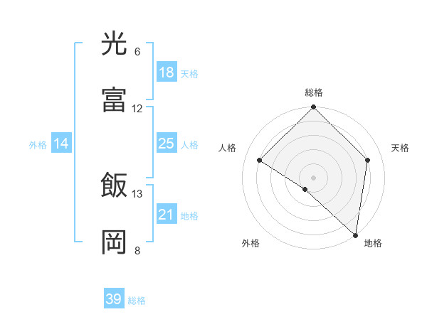 光富 飯岡さんを姓名の画数から五運を鑑定