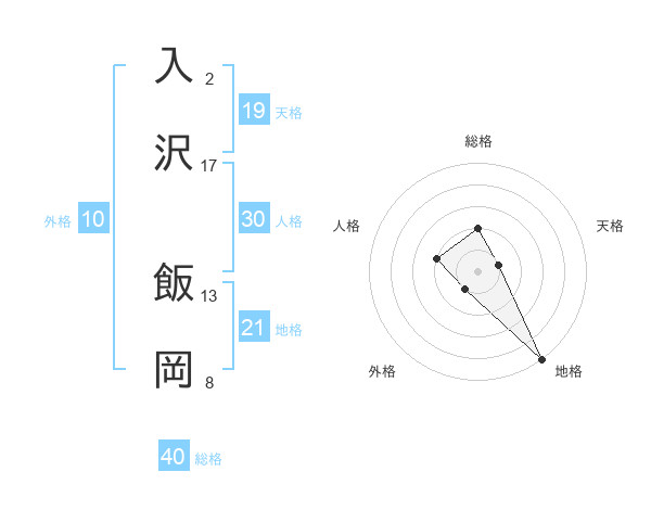 入沢 飯岡さんを姓名の画数から五運を鑑定
