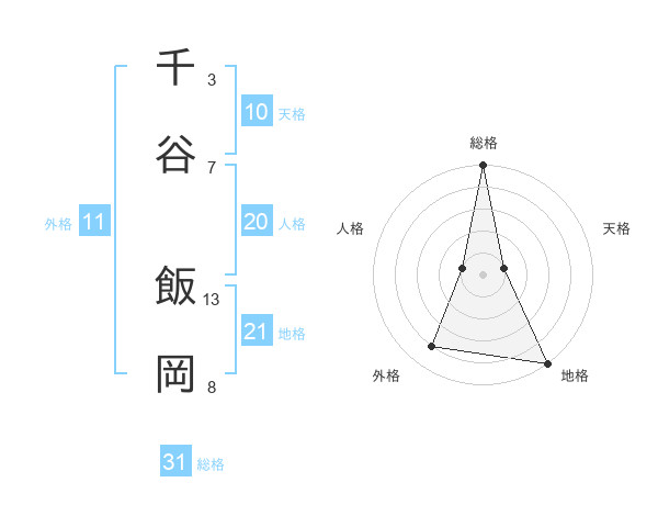 千谷 飯岡さんの総格は31画の5点!