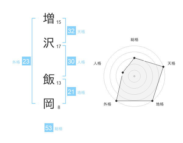 増沢 飯岡さんの総格は53画の3点!
