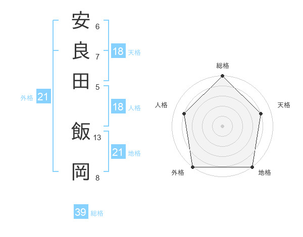 安良田 飯岡さんの地格は21画の5点!