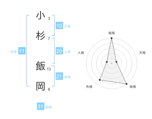 小杉 飯岡さんの総格は31画の5点!