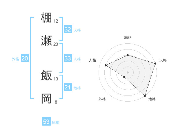 棚瀬 飯岡さんの総格は53画の3点!