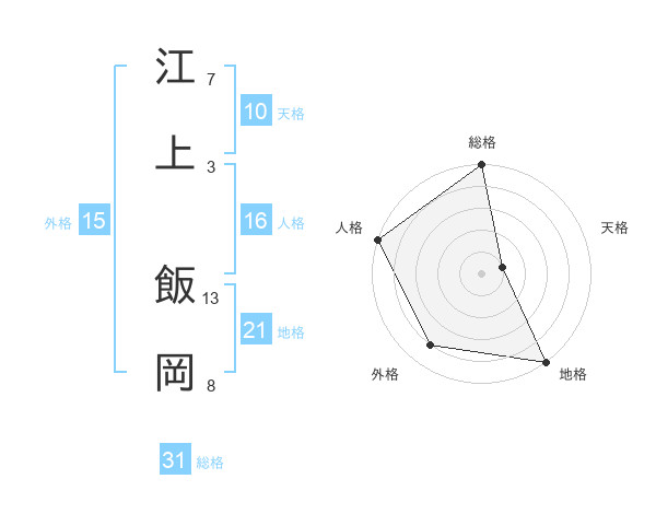 江上 飯岡さんを姓名の画数から五運を鑑定