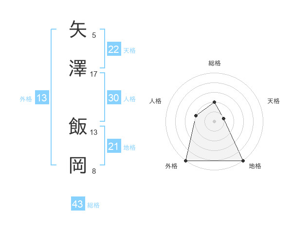 矢澤 飯岡さんの外格は13画の5点!
