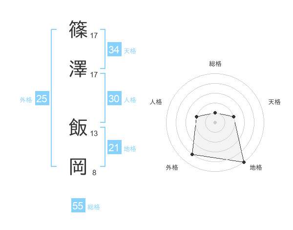 篠澤 飯岡さんを姓名の画数から五運を鑑定
