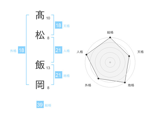 髙松 飯岡さんの地格は21画の5点!