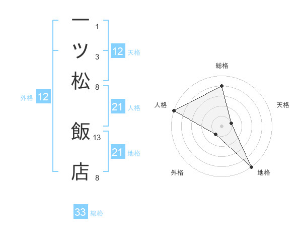 一ツ松 飯店さんの人格は21画の5点!