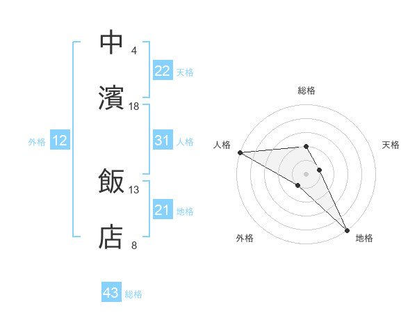 中濱 飯店さんの総格は43画の2点!