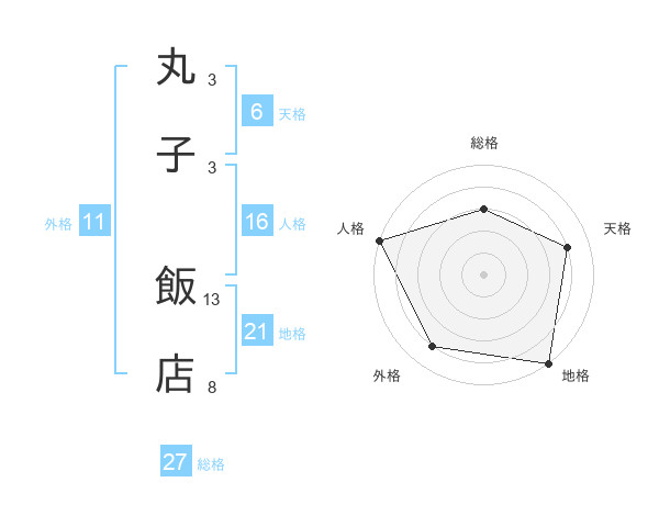丸子 飯店さんを姓名の画数から五運を鑑定