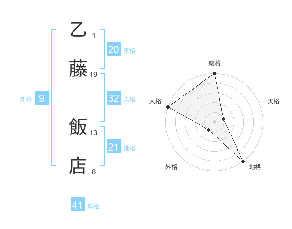 乙藤 飯店さんの地格は21画の5点!