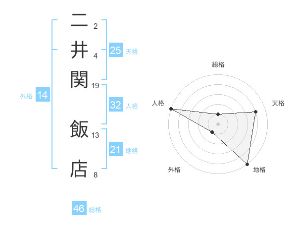 二井関 飯店さんの地格は21画の5点!