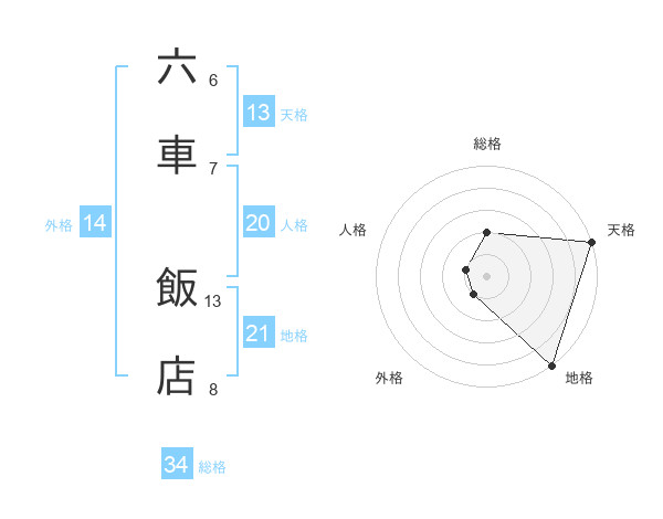 六車 飯店さんの地格は21画の5点!