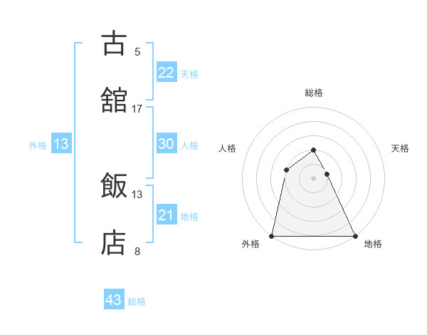 古舘 飯店さんを姓名の画数から五運を鑑定