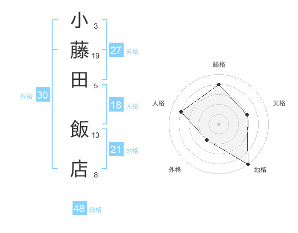 小藤田 飯店さんの総格は48画の4点!
