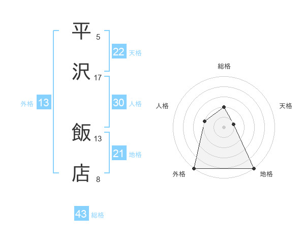 平沢 飯店さんを姓名の画数から五運を鑑定