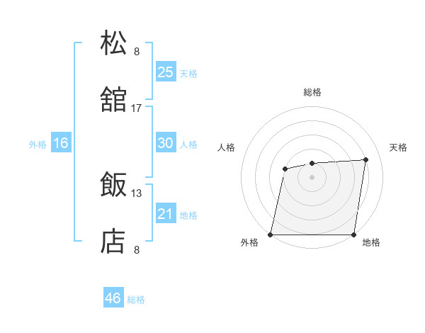 松舘 飯店さんの総格は46画の1点!