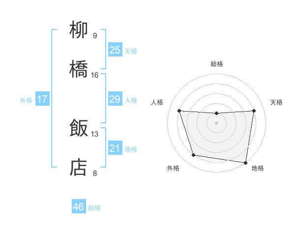 柳橋 飯店さんの総格は46画の1点!
